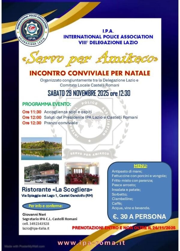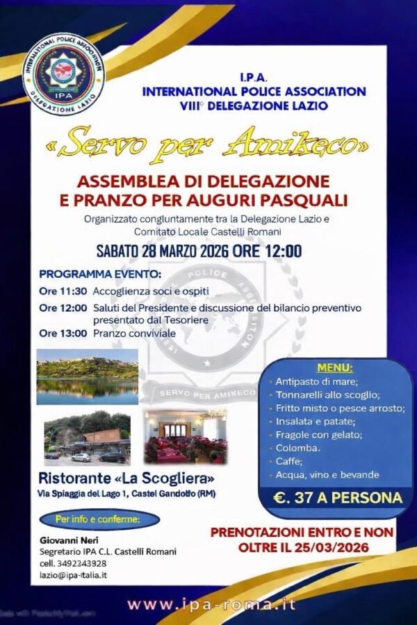 Organizzato dal comitato Castelli Romani e dalla DELEGAZIONE Lazio Ipa, il giorno 16 Gennaio 2026 – ore 17,00 – presso Concessionaria BMW SuperAuto T – via dei Volsci, 55 – Velletri (RM).